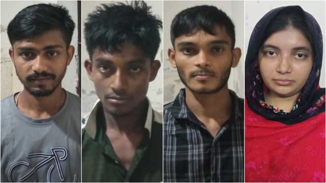 আটকরা হলেন রাজৈর উপজেলার বাজিতপুর গ্রামের বাসিন্দা সুমনের স্ত্রী টুম্পা বেগম (৩০), নয়ানগর গ্রামের বাসিন্দা অনিক হাওলাদার (২২), বাজিতপুর গ্রামের নয়ন খালাসী (২০) এবং মাদারীপুর সদর উপজেলার কেন্দুয়া ইউনিয়নের কাঠের পুল গ্রামের বাসিন্দা সজীব ঘরামী (২০)।