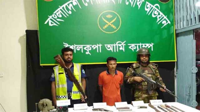 গতকাল সোমবার (২৮ জুলাই) রাতে এ অভিযান পরিচালনা করা হয়। আটক শৈলকুপার দেবীনগর গ্রামের মৃত মোকছেদ আলীর ছেলে।
