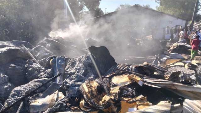 প্রত্যক্ষদর্শীরা জানায়, ভোর ৬টার দিকে হঠাৎ আগুনের সূত্রপাত ঘটে। মুহূর্তেই আগুন চারপাশের গুদামে ছড়িয়ে পড়ে। ফায়ার সার্ভিস সদস্যরা খবর পেয়ে প্রায় এক ঘণ্টা ধরে চেষ্টা করে আগুন নিয়ন্ত্রণ আনে। ততক্ষণে গুদামে রক্ষিত পাটের বস্তা ও প্লাস্টিকের বস্তাসহ যাবতীয় মালামাল পুড়ে ছাই হয়ে যায়।