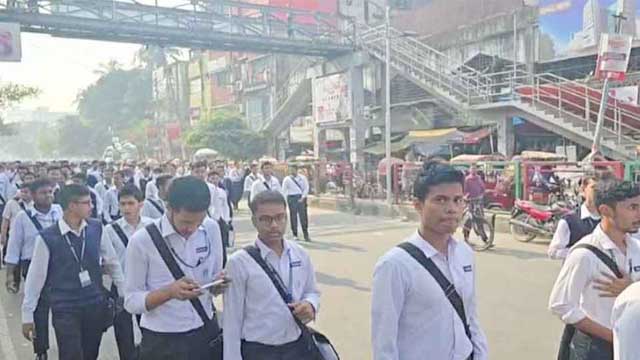 প্রস্তাবিত ও বাস্তবায়নাধীন ‘ঢাকা সেন্ট্রাল ইউনিভার্সিটি’ এর স্কুলিং মডেল বাতিলের দাবিতে রাজধানীর সায়েন্সল্যাব মোড় অবরোধ করেছেন ঢাকা কলেজের উচ্চমাধ্যমিক শ্রেণির শিক্ষার্থীরা।