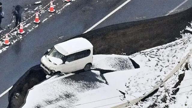 রয়টার্সের ভিডিওতে দেখা যায়, আওমোরির মুত্সু শহরে একটি হোটেলসহ বেশ কয়েকটি ভবন ক্ষতিগ্রস্ত হয়েছে এবং একটি গাড়ি ভেঙে যাওয়া সড়কে আটকে আছে।
