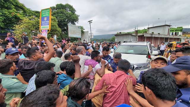 এ ঘোষণার পর ফেরার পথে জাফলংয়ের বল্লাঘাট এলাকায় তাদের গাড়ি আটকে দেয় স্থানীয় পাথর শ্রমিকসহ সংশ্লিষ্টরা। তারা গাড়ির সামনে অবস্থান নিয়ে বিক্ষোভ প্রদর্শন করতে থাকেন। পরে প্রায় ১০ মিনিট চেষ্টা চালিয়ে পুলিশ বিক্ষোভকারীদের সরিয়ে দিতে সক্ষম হয়।