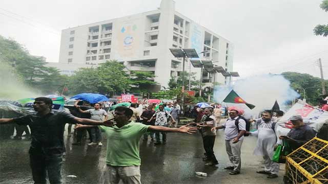 সোমবার (৭ জুলাই) দুপুর সোয়া ১২টার দিকে প্রধান উপদেষ্টার বাসভবন যমুনা সংলগ্ন কাকরাইল মসজিদ মোড়ে অবস্থান তারা। এ সময় পুলিশ তাদের সরে যাওয়ার আহ্বান জানালেও তারা সাড়া দেননি।পরে পুলিশ ওপর বল প্রয়োগ করে।