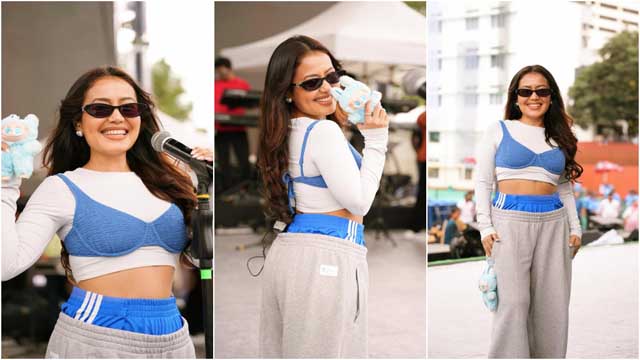 এখানেই শেষ নয়, ট্র্যাক প্যান্টের ভিতর থেকে কোমর পর্যন্ত দেখা যাচ্ছিল রঙিন জিমের অন্তর্বাস। চোখে রোদচশমা, মুখে হাসি—আর এভাবেই ছবি দিয়েছেন নেহা কক্কর।