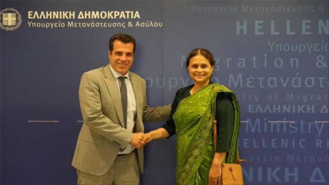 গ্রিসের অভিবাসনবিষয়ক মন্ত্রী আতানাসিওস প্লেভরিসের সঙ্গে সৌজন্য সাক্ষাৎ করেছেন বাংলাদেশের রাষ্ট্রদূত নাহিদা রহমান। বুধবার (১৬ জুলাই) এ সাক্ষাৎ অনুষ্ঠিত হয়। এই সাক্ষাৎ বাংলাদেশ ও গ্রিসের মধ্যে অভিবাসন-সম্পর্কিত সহযোগিতাকে আরো দৃঢ় করবে বলে প্রত্যাশা রাষ্ট্রদূতের।