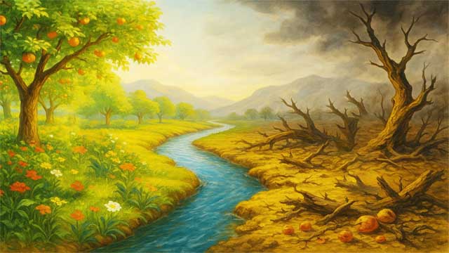তারা এক (অন্যায়) সিদ্ধান্তে সংকল্পবদ্ধ হয়ে সকাল করল। অতঃপর তারা যখন বাগানটি দেখল, তখন তারা বলল, ‘আমরা অবশ্যই পথ হারিয়ে ফেলেছি। (অতঃপর ব্যাপারটি বুঝতে পারার পর তারা বলে উঠল) বরং আমরা তো কপাল পোড়া।’ তাদের মধ্যকার সবচেয়ে ভালো লোকটি বলল, ‘আমি কি তোমাদের বলিনি যে তোমরা আল্লাহর পবিত্রতা ও মহিমা ঘোষণা করছ না কেন?’ তারা বলল, ‘আমরা আমাদের প্রতিপালকের পবিত্রতা ও মহিমা ঘোষণা করছি, আমরা সীমা লঙ্ঘনকারীই ছিলাম।’ অতঃপর তারা একে অপরের দিকে এগিয়ে গিয়ে পরস্পরের প্রতি দোষারোপ করতে লাগল। সম্ভবত আমাদের প্রতিপালক এর পরিবর্তে আমাদের উত্তম (বাগান) দেবেন, আমরা আমাদের প্রতিপালকের অভিমুখী হলাম।’ (সুরা : কলাম, আয়াত : ১৭-৩২)