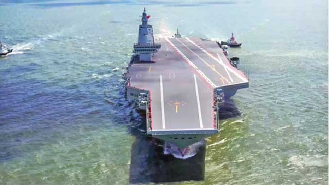 চীনের নৌবহরে তৃতীয় রণতরী হিসেবে যুক্ত হয়েছে ফুজিয়ান। এটি কয়েক ধরনের যুদ্ধবিমান বহনে সক্ষম। রণতরীর নিয়ন্ত্রণভার নৌবাহিনীর কাছে হস্তান্তরকে ঘিরে আয়োজিত অনুষ্ঠানে যোগ দেন প্রেসিডেন্ট শি জিনপিং। গত বুধবার চীনের দক্ষিণাঞ্চলীয় হাইনান প্রদেশের সমুদ্রবন্দরে অনুষ্ঠানটির আয়োজন করা হয়।