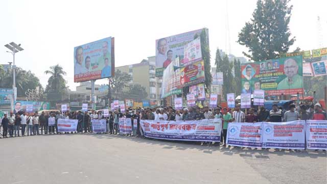 সমিতির সভাপতি কায়েসুল আজাদ শাকিলের সভাপতিত্বে এবং সাধারণ সম্পাদক কামরুল ইসলাম পল্টুর সঞ্চালনায় মানববন্ধনে বক্তব্য দেন আমিনুল ইসলাম রনি, খোরশেদ আলম, মাকসুদ রানা মুরাদ, মো. নুর ইসলাম সরদার, আজিজুল আমিন, ইমরান হাসান, মো. বেলাল হোসেন, নিহাল আহম্মদ হিরা, মোস্তফা কামাল, শাহনাজ আলী জনি প্রমুখ।