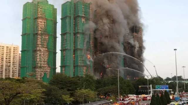 ভবনগুলোর বাইরে সংযুক্ত বাঁশের মাচার মাধ্যমে আগুন এক ভবন থেকে আরেক ভবনে ছড়িয়ে পড়ে বলে ধারণা করা হচ্ছে।