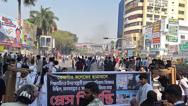 বৃহস্পতিবার সকাল ১০টার দিকে তেজগাঁও কলেজের মূল ফটকের সামনে গিয়ে বিক্ষোভ করে শতাধিক শিক্ষার্থী। এরপর তারা ফার্মগেট মোড়ে অবস্থান নেয়।