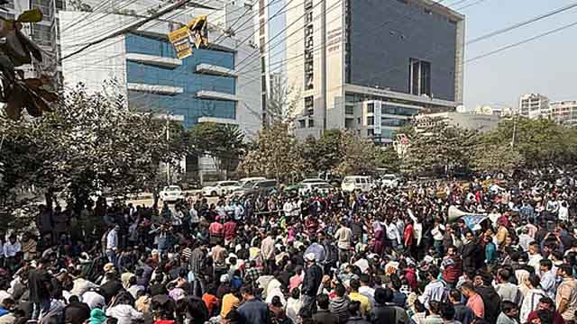 তিন ইস্যুতে রাজধানীর আগারগাঁওয়ে নির্বাচন কমিশনের (ইসি) প্রধান কার্যালয়ের সামনে অবস্থান কর্মসূচি পালন করছেন ছাত্রদলের নেতা–কর্মীরা।